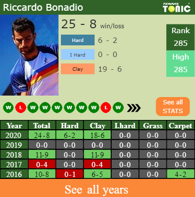 The Italian has a 24-8 win-loss record in 2020, 18-6 on clay (See FULL STATS).