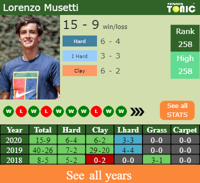 Lorenzo has a 15-9 win-loss record in 2020, 6-2 on clay (See FULL STATS).