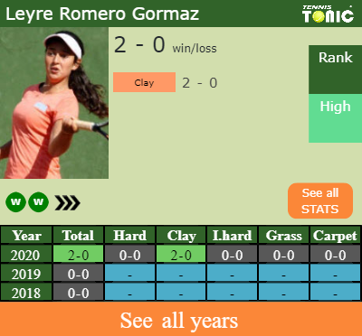 - Leyre Romero GormazRomero Gormaz – Aneta LaboutkovaLaboutkova (0-0) – H2H and prediction