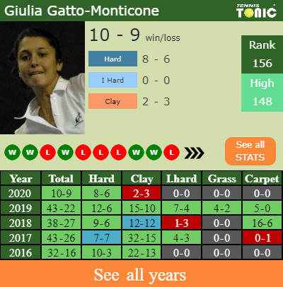 In terms of her career, The Italian has an overall 392-266 record. She has positive 230-160 record on clay.