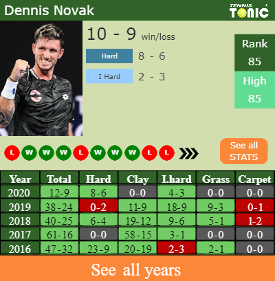 - Dennis NovakNovak – Maximilian MartererMarterer (1-0) – H2H and prediction
