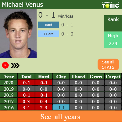 In terms of his career, Venus has an overall 74-84 record. He has negative 9-12 record on clay.
