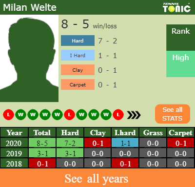 Milan has a 8-5 win-loss record in 2020, 0-1 on clay (See FULL STATS).