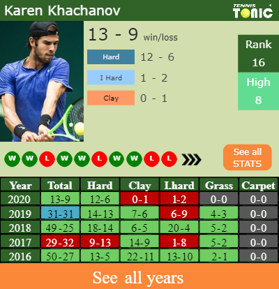Talking about his overall career, The Russian has an overall 280-188 record. He has positive 70-48 record on clay.