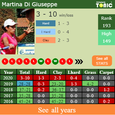 Di Giuseppe has a 3-10 win-loss record in 2020, 2-3 on clay (See FULL STATS).