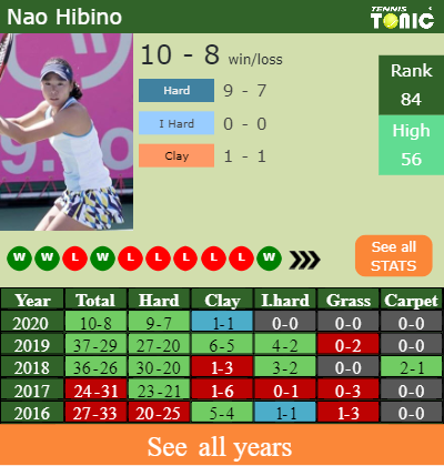 The Japanese has a 10-8 win-loss record in 2020, 1-1 on clay (See FULL STATS).