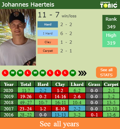 Haerteis has a 11-7 win-loss record in 2020, 1-2 on clay (See FULL STATS).