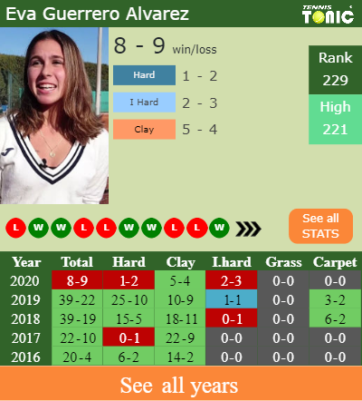 Guerrero Alvarez has a 8-9 win-loss record in 2020, 5-4 on clay (See FULL STATS).