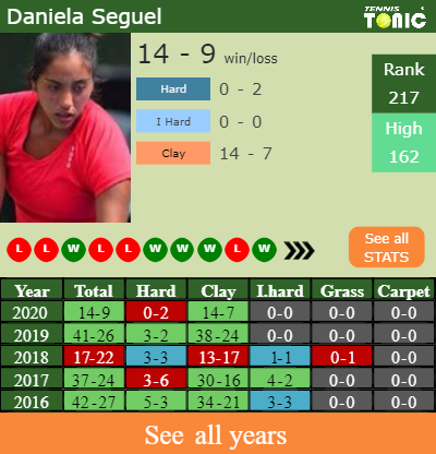 The Chilean has a 14-9 win-loss record in 2020, 14-7 on clay (See FULL STATS).