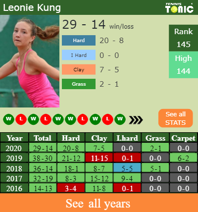 Leonie has a 29-14 win-loss record in 2020, 7-5 on clay (See FULL STATS).