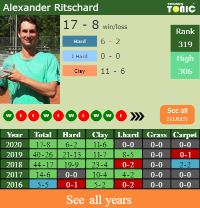 Ranked no. 319, Ritschard will start his run in the Biella Challenger after he played his last match in the Forli Challenger where he lost 7-6(4) 6-3 to Moura Monteiro in the quarter the 24th of September.