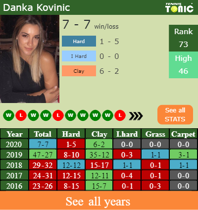 Danka has a 7-7 win-loss record in 2020, 6-2 on clay (See FULL STATS).