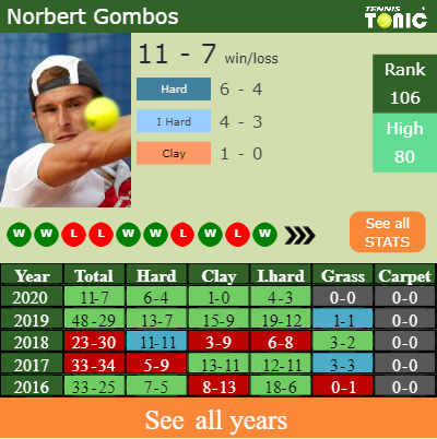Gombos has a 11-7 win-loss record in 2020, 1-0 on clay (See FULL STATS).