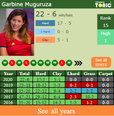 Garbine has a 22-6 win-loss record in 2020, 5-1 on clay (See FULL STATS).