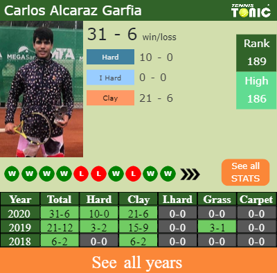The Spaniard’s best result of the current season was getting to the final in M15 Manacor,M15 Antalya,the Trieste Challenger and the Cordenons Challenger.