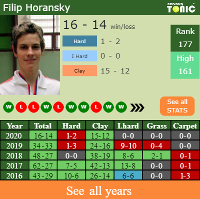 Horansky has a 16-14 win-loss record in 2020, 15-12 on clay (See FULL STATS).