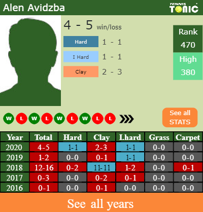 Avidzba has a 4-5 win-loss record in 2020, 1-1 on indoor hard courts (See FULL STATS).