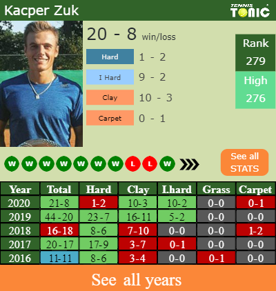 Zuk has a 21-8 win-loss record in 2020, 10-3 on clay (See FULL STATS).