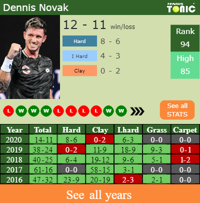 - Dennis NovakNovak – Alejandro Davidovich FokinaDavidovich Fokina (0-1) – H2H and prediction