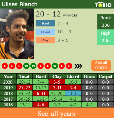 As per the initial odds, Ulises Blanch is the pick to win this match.