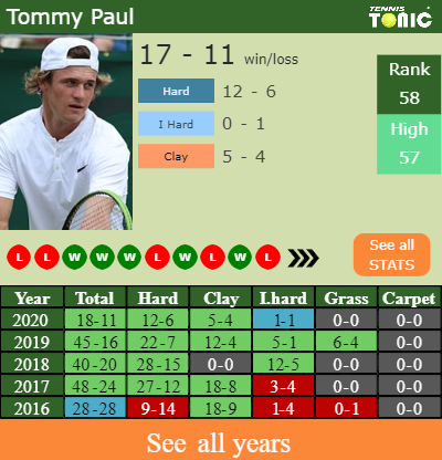 - Tommy PaulPaul – Feliciano LopezLopez (0-0) – H2H and prediction