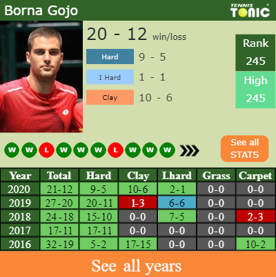 Borna has a 21-12 win-loss record in 2020, 9-5 on hard (See FULL STATS).
