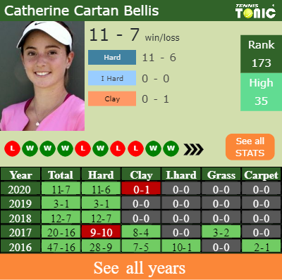 Catherine has a 11-7 win-loss record in 2020, 11-6 on hard (See FULL STATS).