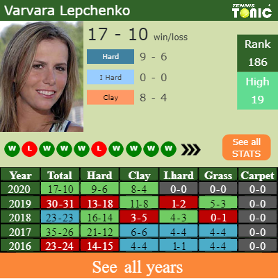 Varvara has a 17-10 win-loss record in 2020, 9-6 on hard (See FULL STATS).