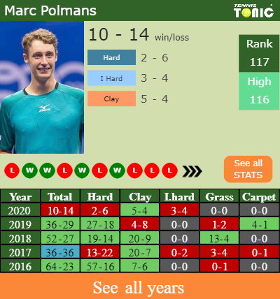 As per the initial odds, Marc Polmans is the pick to win this match.