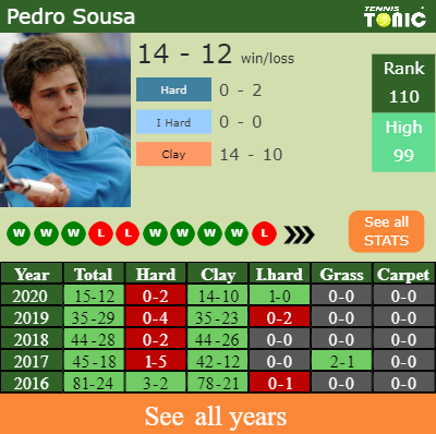 Talking about his overall career, Sousa has an overall 480-286 record. He has positive 429-237 record on clay.