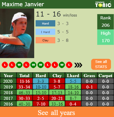 In terms of his career, Janvier has an overall 261-206 record. He has positive 141-101 record on clay.