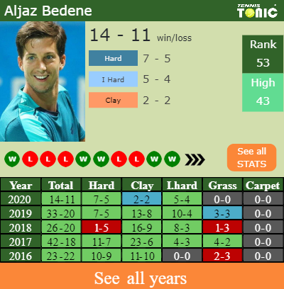 In the qualifications, The Slovenian defeated Sonego (6-2 4-6 7-5). During the match Bedene scored 98 points vs Sonego’s 87. Aljaz was pretty aggressive to blast 39 winners.