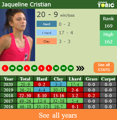 Cristian has a 20-9 win-loss record in 2020, 17-4 on indoor hard courts (See FULL STATS).