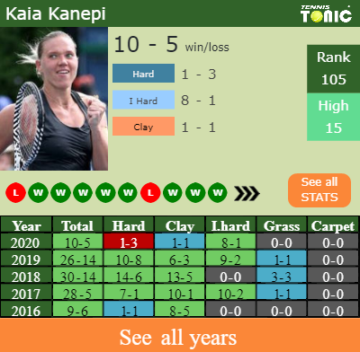 Kanepi has a solid win-loss record in the last 10 years having won 65% of her matches (226-122). 8-1 on indoor hard courts in 2020. In connection with her performance on the same surface of this event, Kanepi has a 43-14 win-loss record in the last years on indoor hard courts.