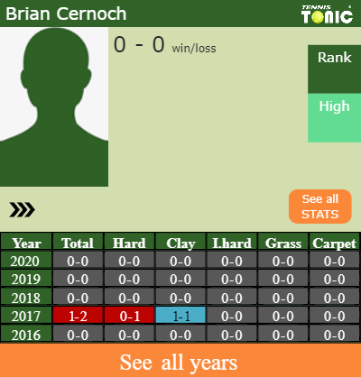 Talking about his overall career, Cernoch has an overall 1-2 record. He has negative 0-1 record on hard.
