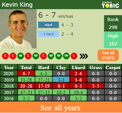Ranked no. 298, King will start his run in the Cary Challenger after he played his last match in All Lower Level Tournaments where he lost 3-6 7-6(1) 11-9 to Redlicki in the 1st round the 16th of September.