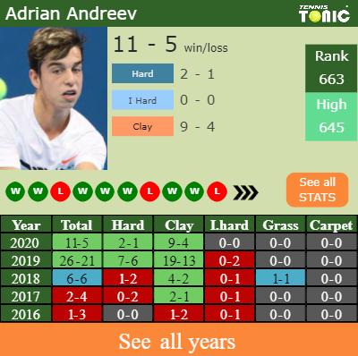 In terms of his career, Andreev has an overall 46-39 record. He has negative 0-5 record on indoor hard courts.