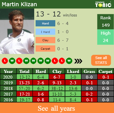 Klizan’s best result of the current season was reaching the final in the Istanbul Challenger.