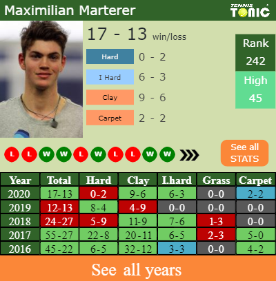 Maximilian has a 17-13 win-loss record in 2020, 6-3 on indoor hard courts (See FULL STATS).