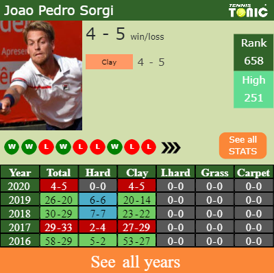 Pedro Sorgi has a 4-5 win-loss record in 2020, 4-5 on clay (See FULL STATS).