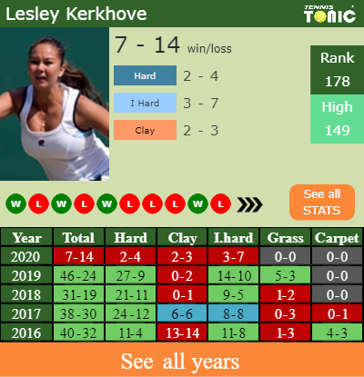 The Dutch has a 7-14 win-loss record in 2020, 2-4 on hard (See FULL STATS).