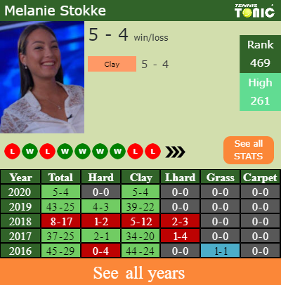 Melanie has a 5-4 win-loss record in 2020, 0-0 on hard (See FULL STATS).