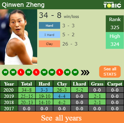 The Chinese has a 34-8 win-loss record in 2020, 5-2 on indoor hard courts (See FULL STATS).