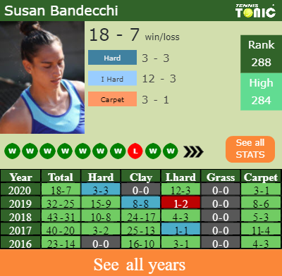 Bandecchi has a 18-7 win-loss record in 2020, 12-3 on indoor hard courts (See FULL STATS).