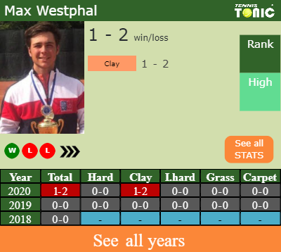 Westphal has a 1-2 win-loss record in 2020, 0-0 on hard (See FULL STATS).