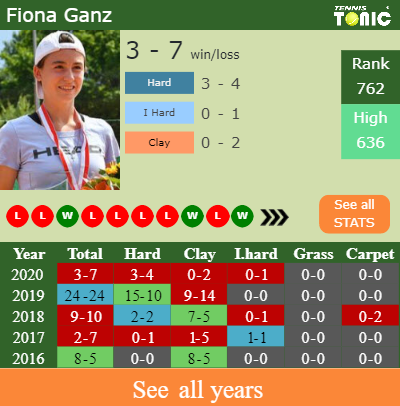 Fiona has a 3-7 win-loss record in 2020, 3-4 on hard (See FULL STATS).