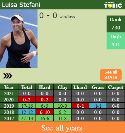 In terms of her career, Luisa has an overall 79-57 record. She has a positive 45-30 record on hard.