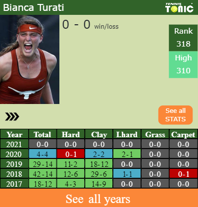 In terms of her career, Turati has an overall 120-61 record. She has a positive 34-19 record on hard.