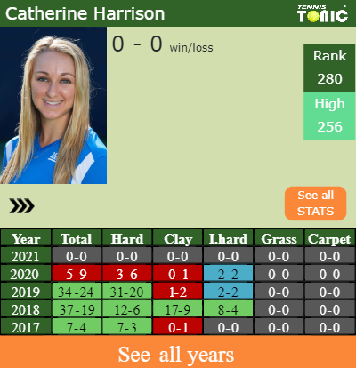 This will be the 3rd time that Catherine Harrison and Bianca Turati square off. The head to head is 2-0 for Harrison (see full H2H stats), 1-0 on hard.
