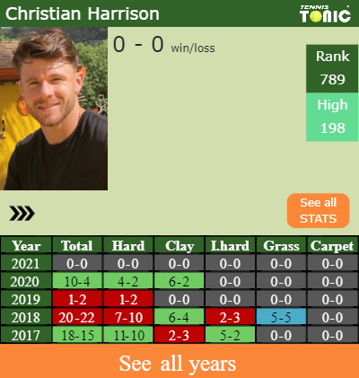 There is no head to head record between Marcelo Tomas Barrios Vera and Christian Harrison since this will be the first time that they will fight against each other in the main tour.